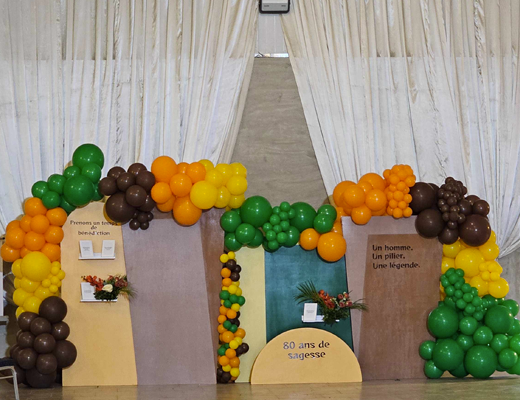 Installation la veille ou le jour J – Nous assurons l’installation complète de votre décor. Vous n’avez rien à gérer : tout est orchestré pour vous offrir une expérience fluide et sereine.